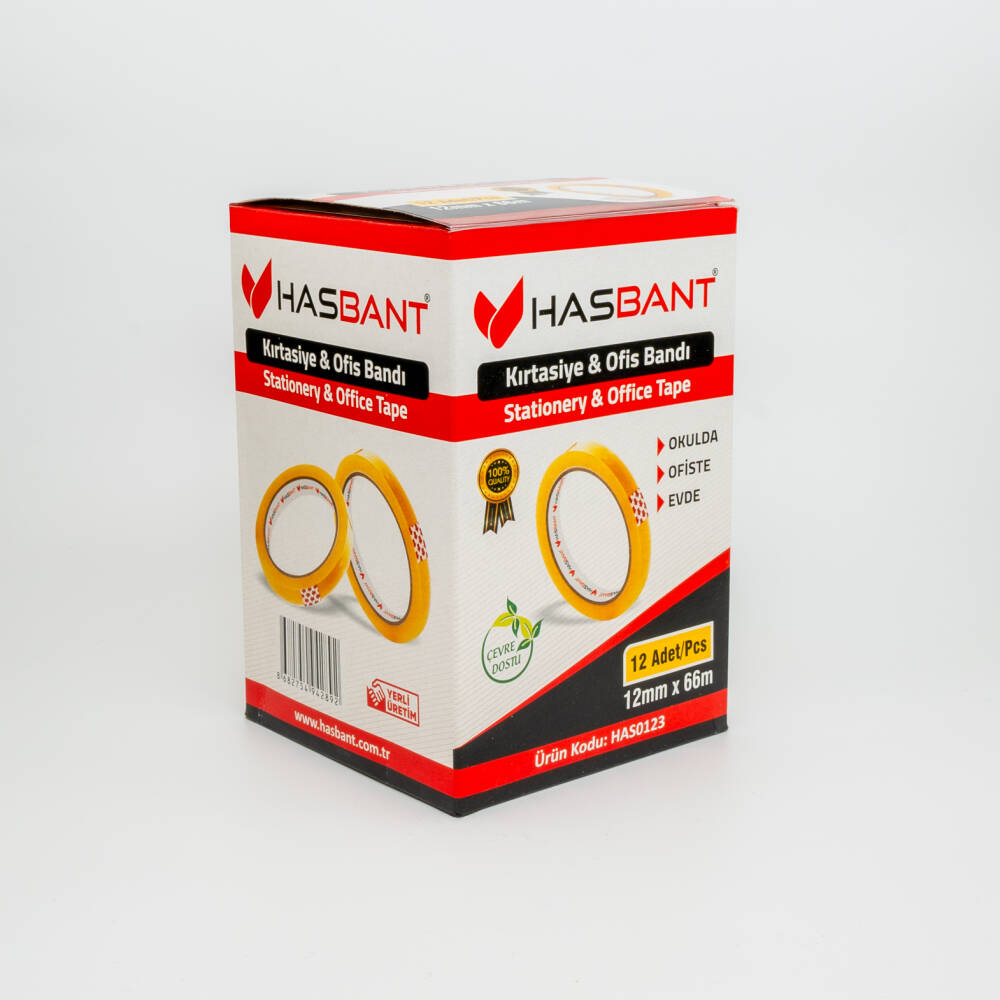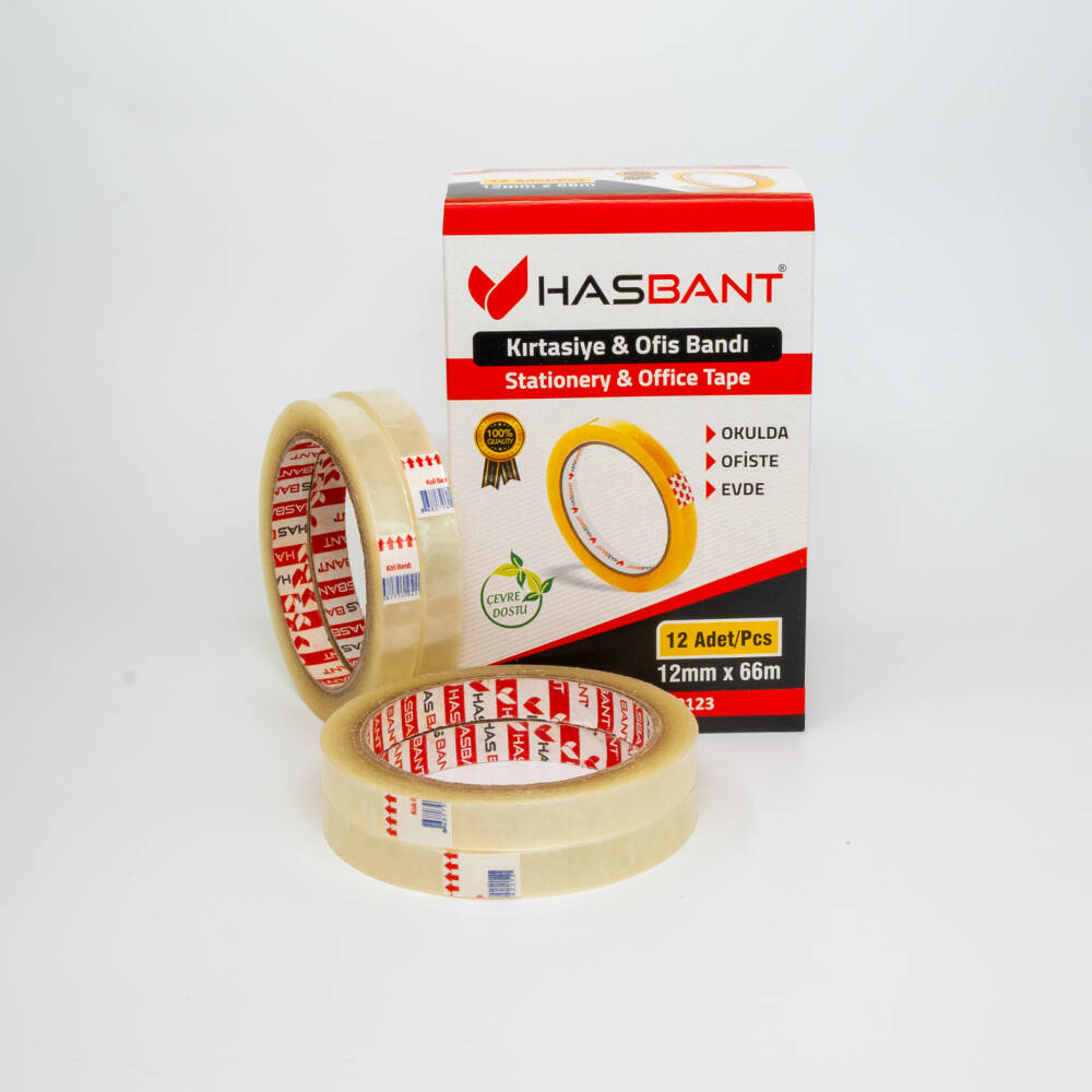 HAS BANT KIRTASİYE BANDI, ofis, okul ve ev kullanımı için geliştirilmiştir. Elle kolayca kopartılır, iz bırakmaz ve sararmaya dirençlidir. Su bazlı akrilik yapışkanıyla yüksek performans sunar.