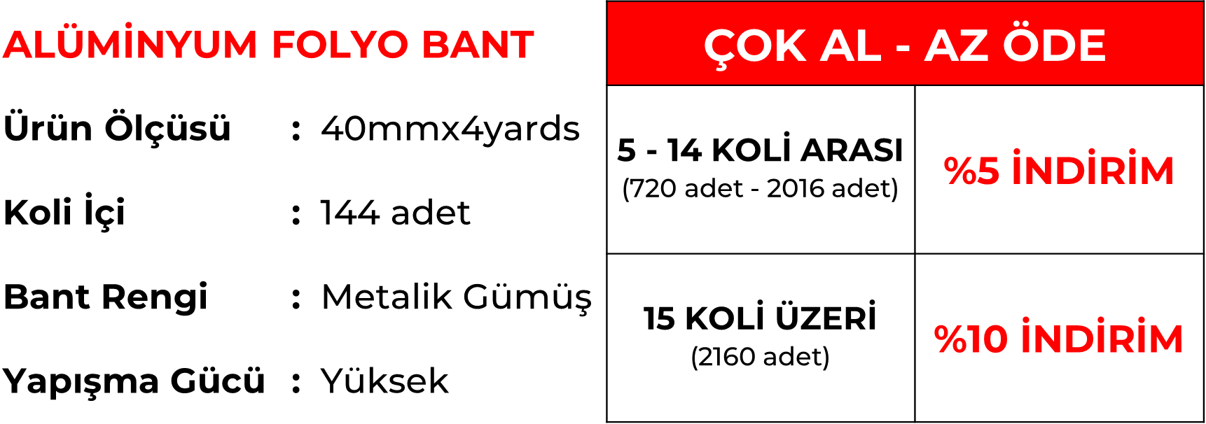 - Malzeme: Saf alüminyum folyo + astar kaplamalı akrilik yapışkan